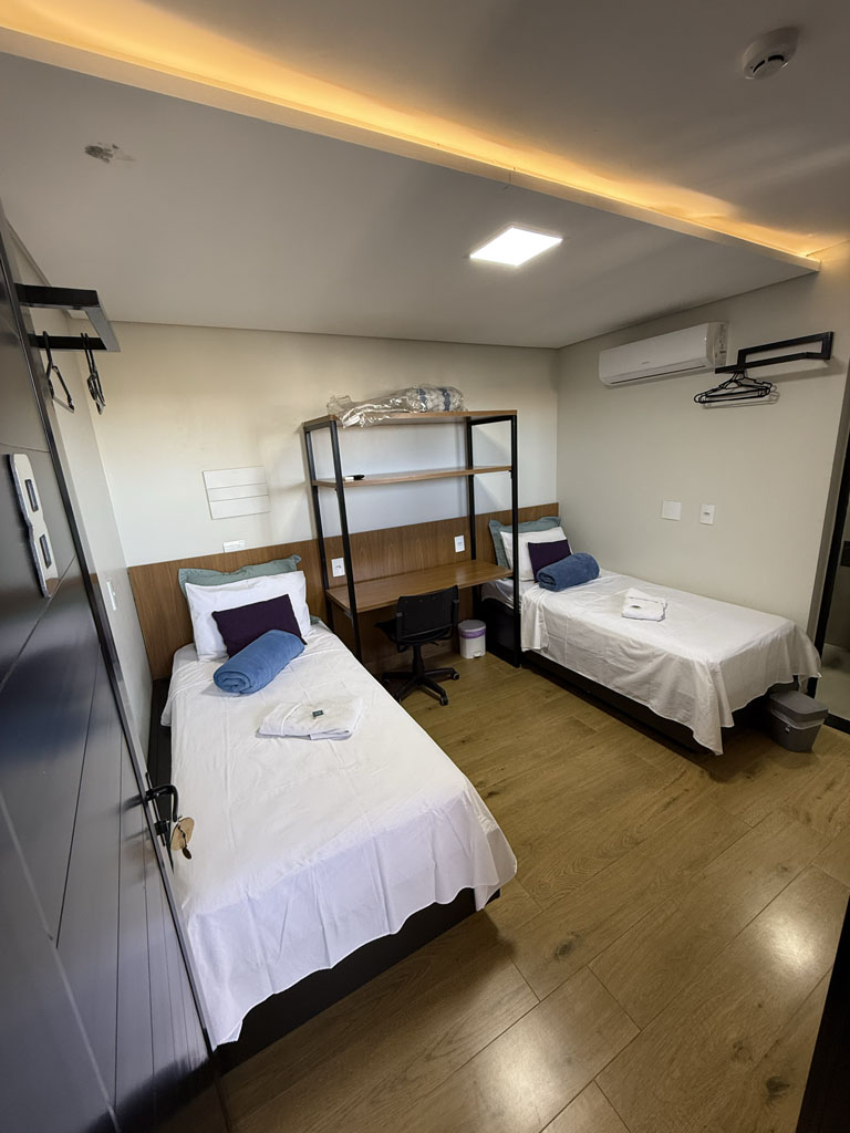 Quarto possui ar condicionado, banheiro privativo e escrivaninha. A pousada está localizada em uma região tranquila. Ambiente familiar e aconchegante.