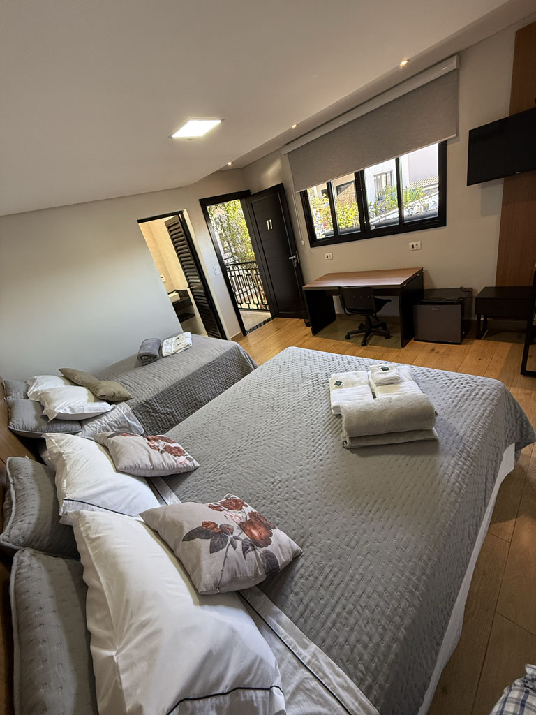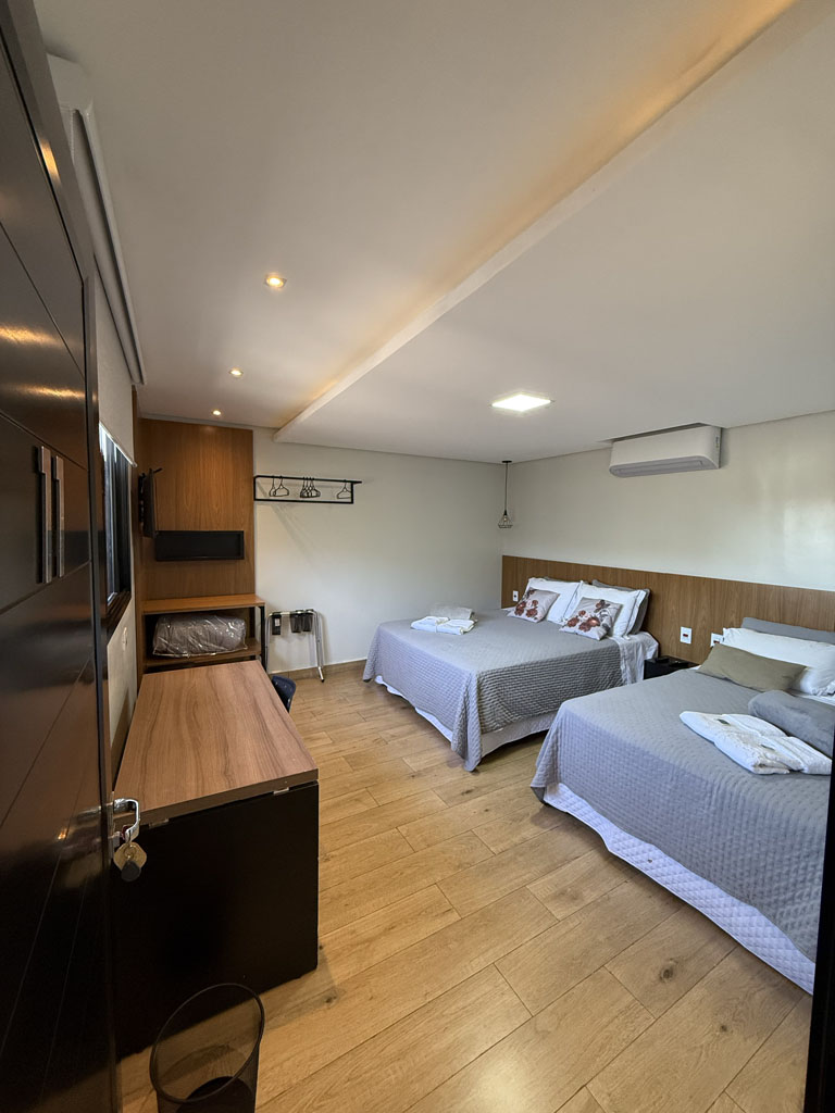 As suítes possuem Ar condicionado, TV Smart, banheiro privativo e conforto para seu descanso.